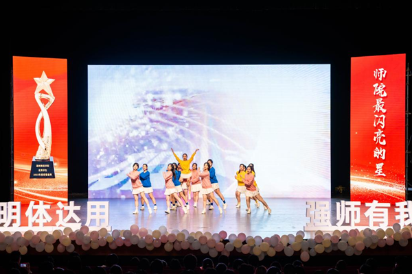 现场,师生代表们共同沐浴星光、追求卓越、感受榜样力量。生命科学学院“一剂良方”团队分享他们在学科竞赛中奋斗的青春故事,讲述了他们以智慧和勇敢突出重围,荣获互联网+国赛银奖的心路历程。理学院18级物理学(师范)班分享了班级考研率超50%的“秘笈”及对学校和老师的感激之情。原创诗朗诵《传承》、音乐学院舞蹈《我们都是追梦人》、体育学院花样跳绳《悦动青春》展现了师生们携手并肩奔赴灿烂远方的昂扬姿态。点点星光汇聚成璀璨星河,盛典在《夜空中最亮的星》《星辰大海》中落下帷幕。