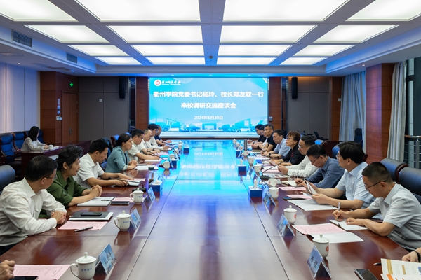 5月30日下午,衢州学院党委书记杨玲,校长郑友取,党委副书记吴耀光,副校长江爱民、郑文山,纪委书记陈烈荣,副校长周兆忠,党委副书记章剑锋一行来校考察交流,校党委书记许慧霞,党委副书记丁敢真,副校长舒志定,纪委书记任伟海,副校长潘音、李庆峰、楼建林,党委委员、组织部部长劳士健出席接待,党委、校长办公室负责人参加交流会谈。