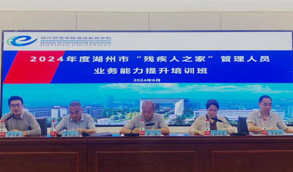 6月18日,湖州市2024年“残疾人之家”管理员培训班在我校继续教育学院开班,来自全市各机构的管理员参加培训。市残联党组副书记、副理事长徐杲,我校继续教育学院相关负责人,市残联二级调研员潘永如等人参加开班仪式。