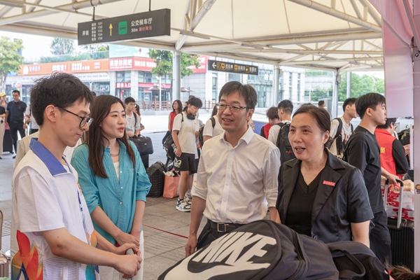 校领导们还走访慰问了湖州高铁站我校新生接待点。