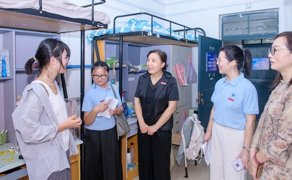校领导们首先来到研究生公寓,询问了解新生报到情况,向现场的新生和家长表达了热烈的欢迎和亲切的问候。在各新生接待点,志愿者们一对一引导帮助新生们办理各项报到事宜,迎新工作有序开展。随后,校领导班子成员分别带队走访慰问了各联系学院的新生寝室。
