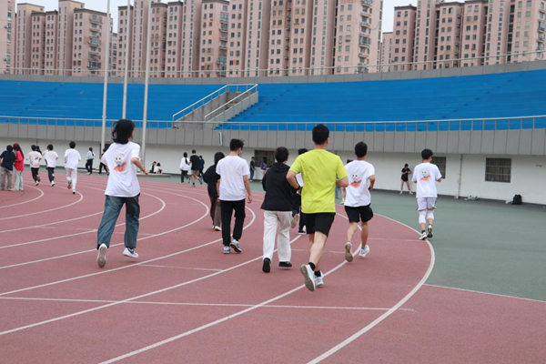 在主持人的引导下,同学们走向跑道,跑步活动正式开始。春风拂过跃动的身影,奔跑的脚步踏出了青春与昂扬,动感的背景音乐也为此次活动增添了别样的色彩。沿途设置的“能量加油站”不仅提供矿泉水、糖果等补给,更有师生们的呐喊助威,提供了体力上支持的同时,也让同学们收获满满成就感。
