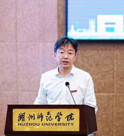 副校长(主持行政日常工作)盛况代表学校对专家组全体成员入校评估考察表示诚挚欢迎和衷心感谢,并补充汇报本科教育教学相关工作。他从学校发展历程、办学目标、办学条件、社会影响力等方面简要介绍了学校概况,并围绕教育教学改革、人才培养特色、本科育人成效等方面汇报了学校的本科教育教学工作。他强调,学校始终坚持立德树人根本任务,坚定走内涵式发展之路,聚力打造高水平大学与城市命运共同体,努力培养高素质应用型人才。盛况表示,入校考察是审核评估的重要环节,学校将以积极的态度认真配合考察工作,虚心听取专家组的指导意见,认真查摆问题、研究整改措施,加快推动学校本科教育教学高质量发展,为早日建成在国内有一定影响、一定水平、一定地位的湖州师范大学奠定坚实基础。