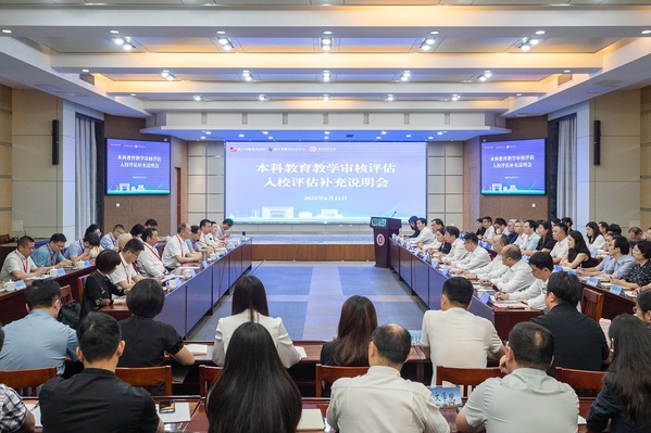 6月11日上午,学校召开本科教育教学审核评估专家组入校评估补充说明会。审核评估专家组组长、江苏师范大学原党委书记方忠,副组长、台州学院校长乐传永等专家组成员,审核评估项目管理员及项目秘书,浙江省教育考试院相关负责人,学校领导班子成员出席,学校各职能部门负责人,二级学院院长、党委(总支)书记、教学副院长、党委(总支)副书记,校院督导代表,师生代表,专家联络员等参会。会议由省教育考试院研究室主任、省教育评估中心副主任李金波主持。